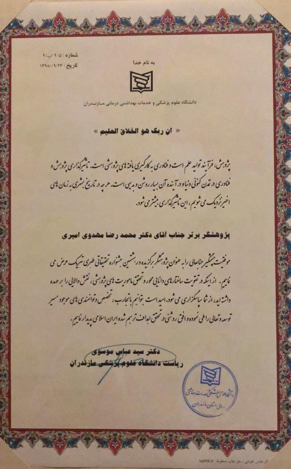 تقدیر از جناب آقای دکتر محمدرضا مهدوی امیری ریاست محترم آزمایشگاه پاتوبیولوژی فجر، [...]